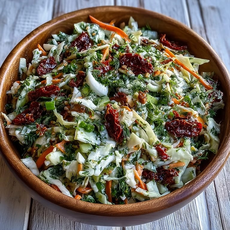 Save One summer afternoon, I opened my fridge to find two lonely cabbage halves and a jar of sun-dried tomatoes I'd forgotten about. Instead of letting them wilt away, I started slicing, and within minutes, the kitchen smelled like an herb garden after rain. The crunch of fresh cabbage against the sweet, tangy tomatoes turned into something I now crave on hot days. It's the kind of salad that makes you wonder why you ever bought pre-mixed bags.