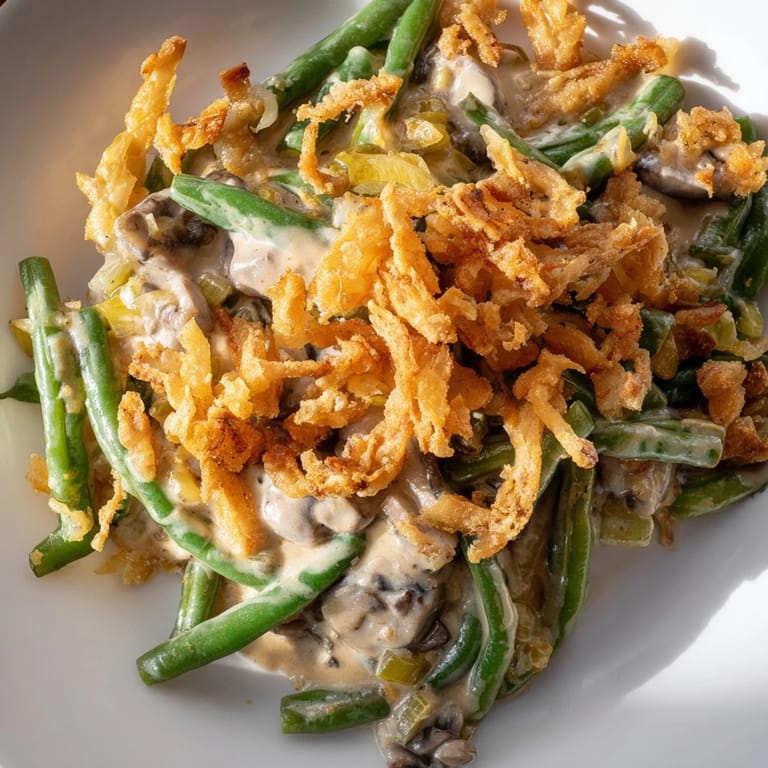Save There's nothing quite like a classic Green Bean Casserole to complete a holiday feast or a cozy family dinner. This recipe elevates the beloved side dish by swapping canned soup for a rich, homemade creamy mushroom sauce. Tender-crisp green beans are enveloped in this velvety sauce, then topped with a generous layer of crispy fried onions for that irresistible crunch. It's comfort in a dish, guaranteed to be a hit on any table.