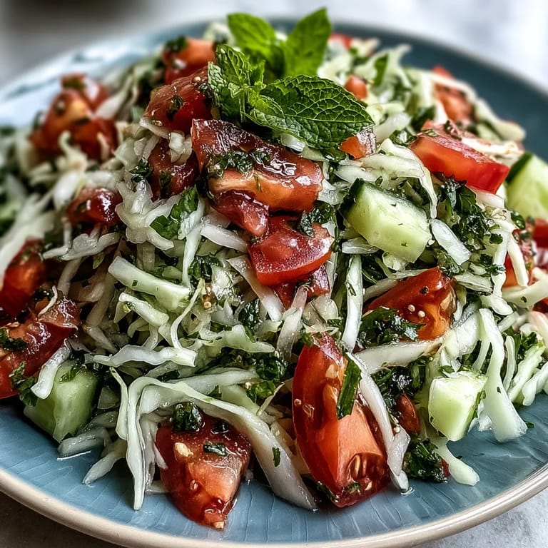 Save My neighbor Samira brought this salad to a summer potluck, and I watched everyone go back for seconds before the grilled kebabs were even ready. The cabbage stayed impossibly crisp even after sitting out, and the lemon dressing had this brightness that made everything else on the table taste richer by contrast. She laughed when I asked for the recipe, saying it was just what her mother threw together on busy weeknights. I've been making it ever since, and it's become my go-to whenever I need something fast, crunchy, and unapologetically fresh.