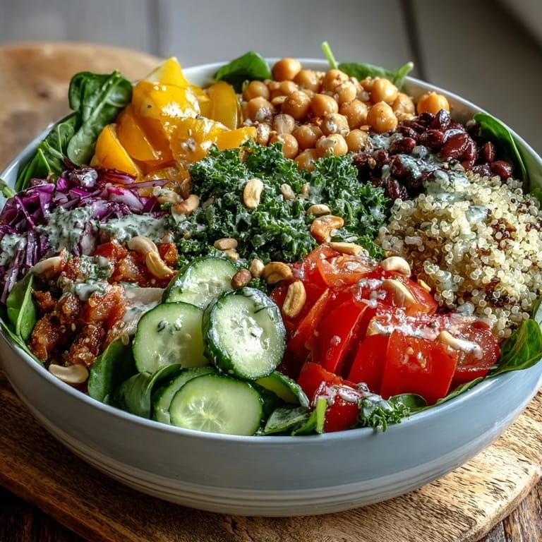 Save There's something magical about building a salad instead of tossing one together mindlessly. My neighbor brought over a rainbow bowl last summer, and I watched her arrange each ingredient in neat sections before tossing—suddenly vegetables I'd seen a hundred times looked exciting again. That simple act of intentionality changed how I approach salads, turning them from obligatory side dishes into something I actually crave. Now whenever I make this version at home, I find myself pausing to appreciate the colors before mixing it all together.