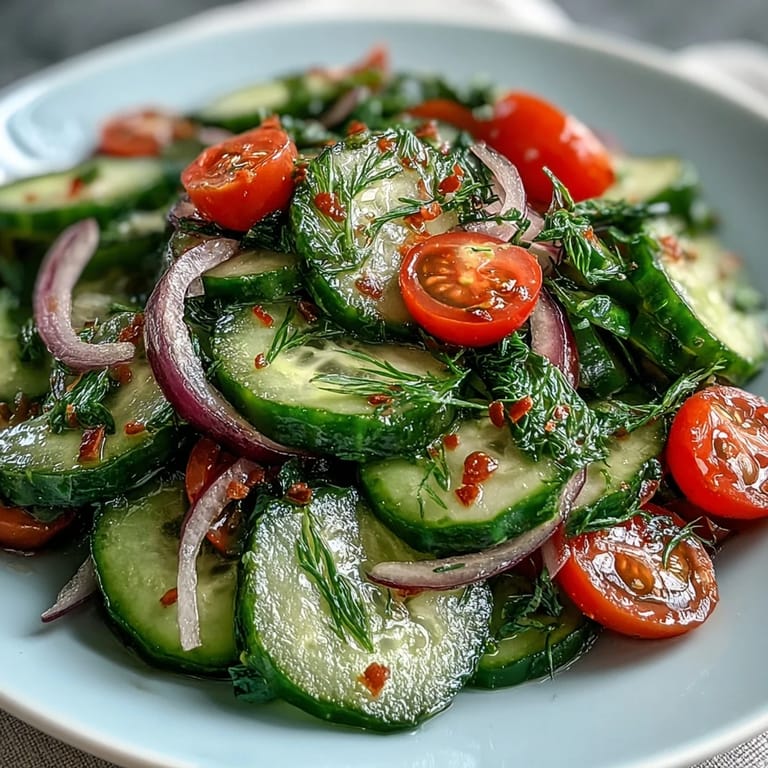 Save My neighbor handed me a grocery bag full of cucumbers one July afternoon, sheepish and laughing because her garden had exploded overnight. I stood in my kitchen staring at eight fat cucumbers, wondering what on earth I was going to do with them before they turned to mush. That's when I remembered my aunt's trick: slice them thin, salt them down, and let vinegar work its magic. Twenty minutes later, I had a bowl of something so crisp and tangy I kept sneaking bites straight from the fridge.